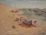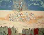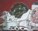 2003Dit doek beeldt een strand uit waar in scherven gegraven wordt. Zo is de situatie in de getroffen gebieden van de zeebeving. Verloren en ontredderd zoekt men naar dierbaren. Het is nauwlijks te bevatten.