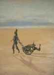 2001Op het strand met de sfeer van vroeger, acryl op doek,50 x 40 cm