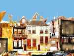 Digitaal bewerkte foto van oude havens en gebouwen in Dordrecht. Prettige kleuren in gesigneerde oplage van 10, incl passepartout en houten lijst.