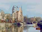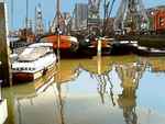 2004Rotterdam, Oude haven Digitaal bewerkte foto van de Leuve Haven in Rotterdam. Door middel van kleurgieten en schilderen waarbij de muis fungeert als kwast is het digitale schilderij ontstaan. In passepartout en houten lijst. afmeting 40x30 in lijst40x50 Gesigneerd in oplage van 10.